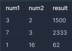 num1을 num2로 나눈 값에 1,000을 곱한 후