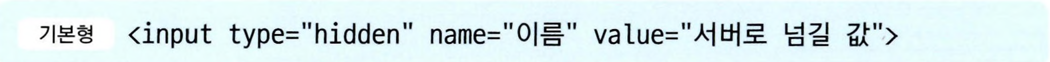 - 화면에 있는 폼에는 보이지 않지만 사용자가 입력을 마치면 폼과 함께 서버로 전송되는 요소