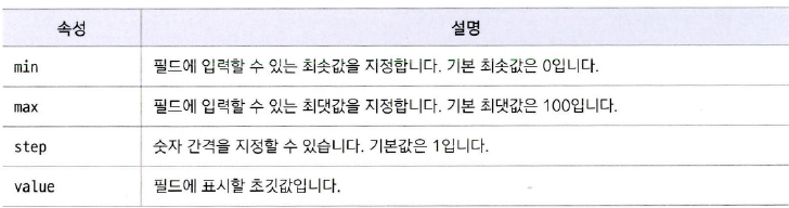 4) type="number", type="range" : 숫자 입력 필드를 나타냄
