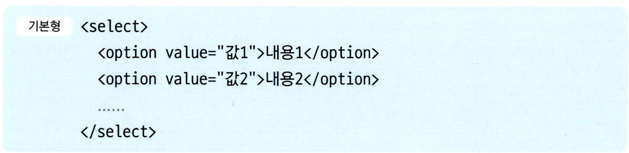 - 사용자가 내용을 직접 입력하지 않고, 여러 옵션 중에서 선택하게 하려면 드롭다운 목록이나 데이터 목록을 사용함.
