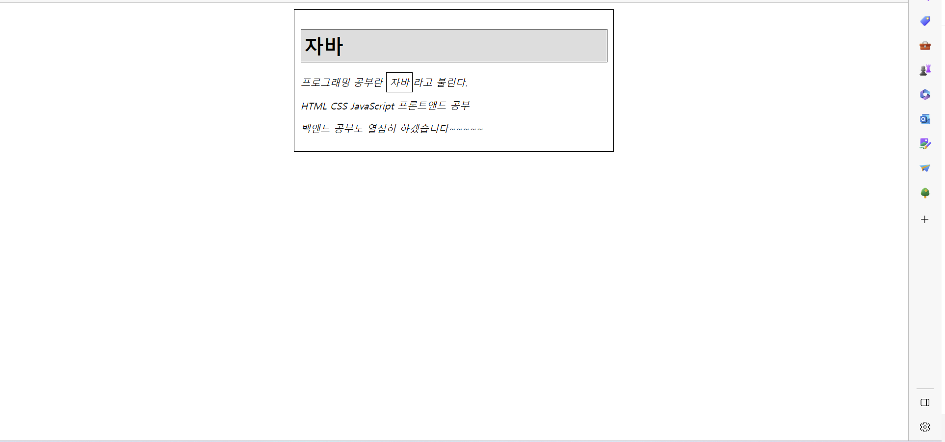 <p>프로그래밍 공부란 <span class="accent">자바</span>라고 불린다.</p>