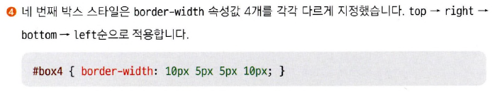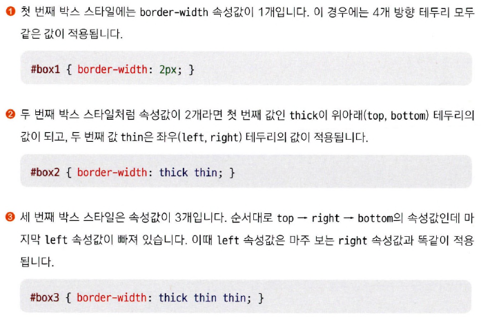 border-width: thick thin; /*top, right, bottom -> left right를 따라갑니다.*/