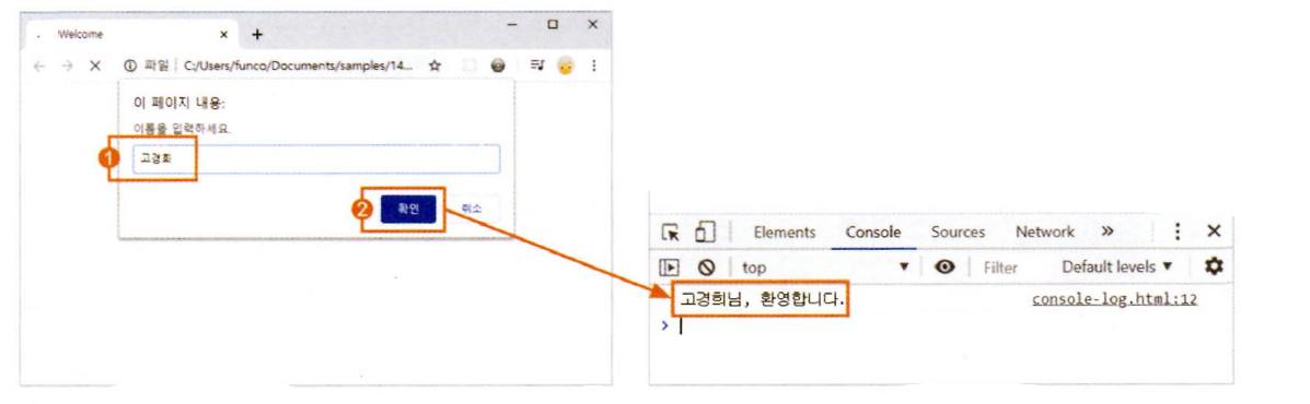 - 콘솔 창은 웹 브라우저의 개발자 도구 창에 포함되어 있는 공간