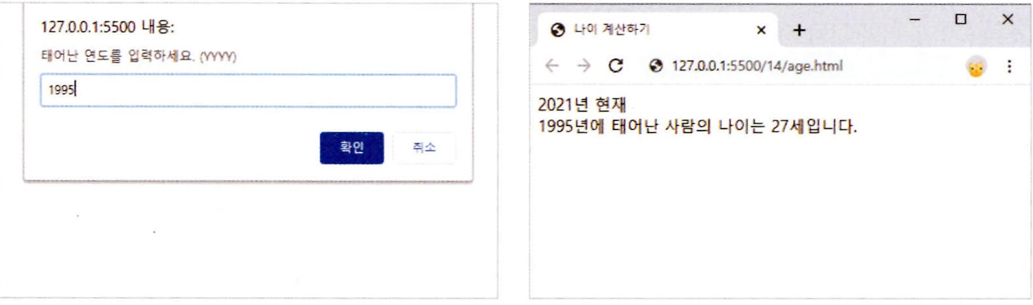 document.write(birthYear + "년에 태어난 사람의 나이는 " + age + "세입니다.");