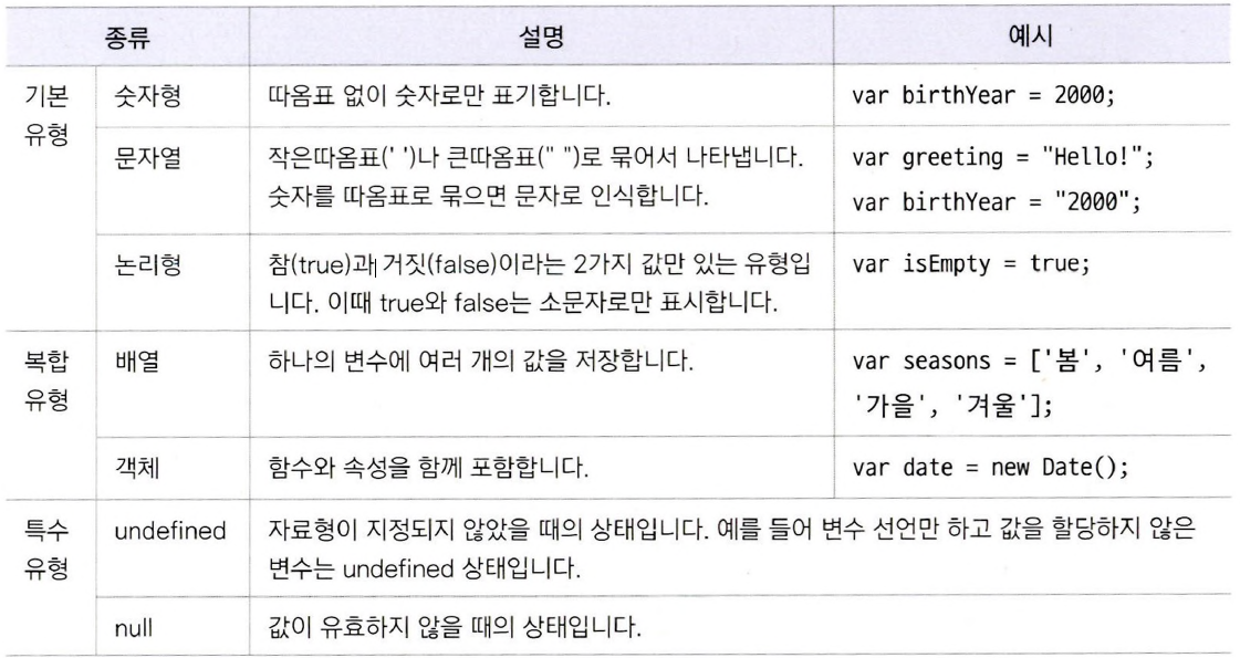 - undifined : 자료형이 정의되지 않았을 때의 데이터 상태