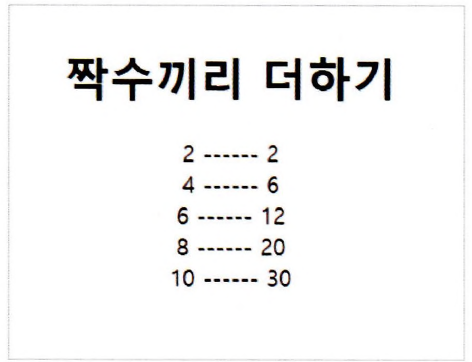• i = 2 —> i < 6 체크 一> (조건 만족함) 一> sum += i 실행 一> i++ 실행