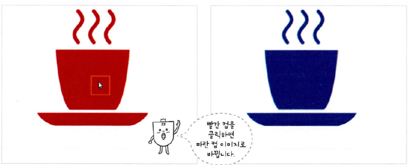 예제 - 이미지를 cup 함수로 저장한 후 click 이벤트가 발생하면 changePic() 함수 실행하기