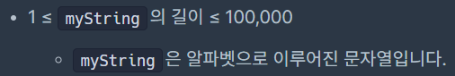 알파벳으로 이루어진 문자열 myString이 주어집니다.