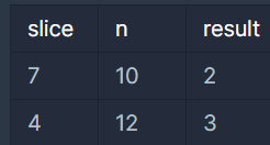 • 조각 수가 slice라고 주어졌으므로, 몫을 구할 때 나누는 수가 slice가 된다.