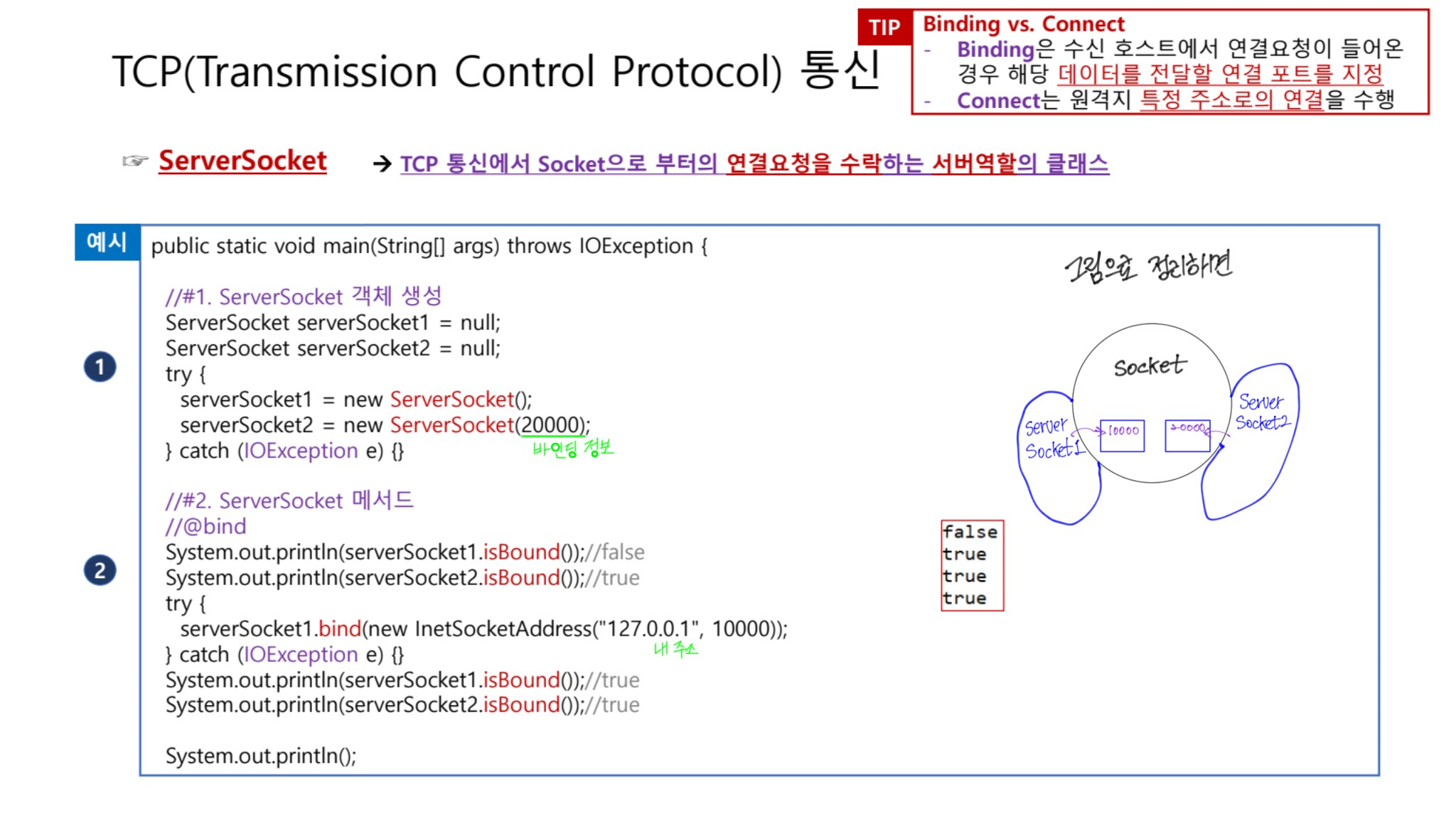 : TCP 통신에서 Socket으로부터의 연결요청을 수락하는 서버 역할의 클래스