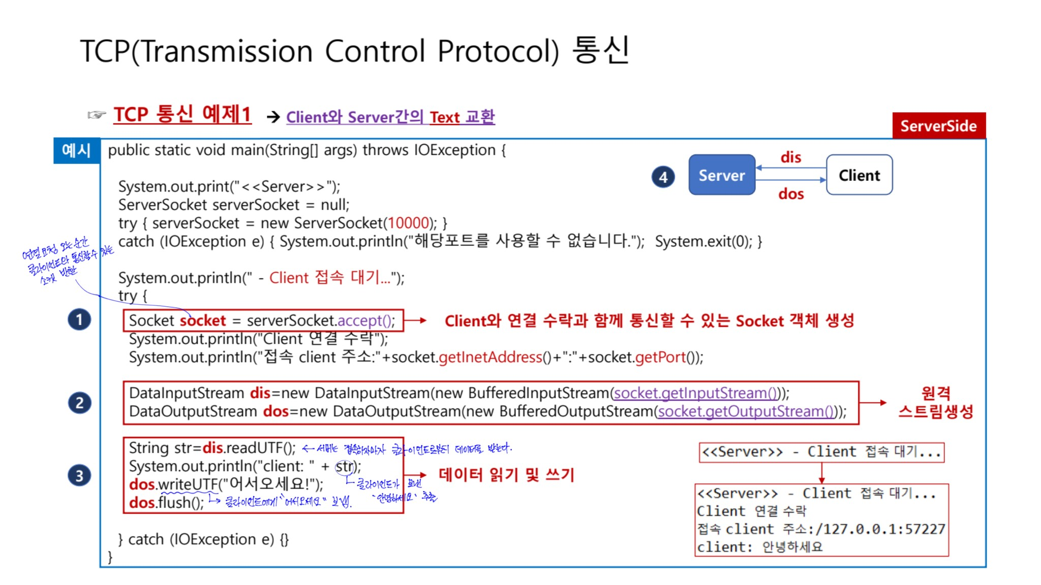 | TCP (2) TCP 통신 ServerSocket 객체생성 및 주요 메서드 (0) | 2023.05.28 |