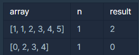 정수가 담긴 배열 array와 정수 n이 매개변수로 주어질 때, array에 n이 몇 개 있는 지를 return 하도록 solution 함수를 완성해보세요.