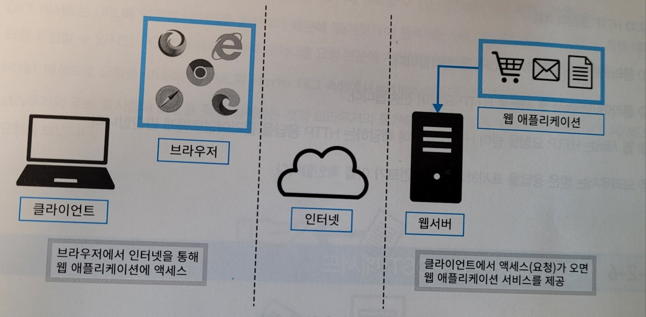 - 클라이언트와 웹 서버는 HTTP 요청(request)과 응답(response) 로 상호작용한다.
