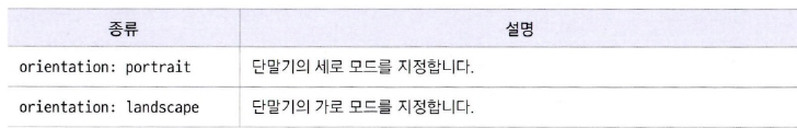 - orientation 속성값으로는 portrait와 landscape가 있음.