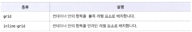- 그리드 컨테이너를 만들 때는 display 속성을 grid나 inline- grid로 지정