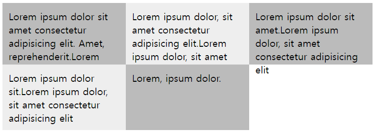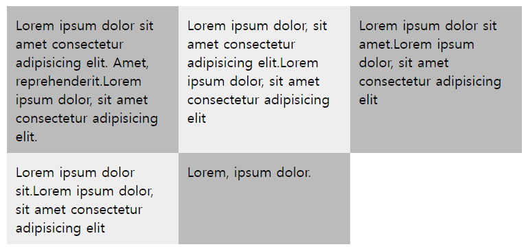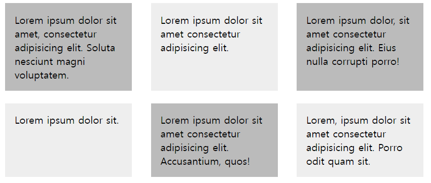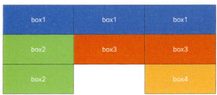 첫 번째 줄에는 boxl 영역을 3개 배치하고 두 번째 줄에는 box2 영역 1개와 box3 영역 2개, 그리고 마지막 줄에는 box2 영역 1개와 중간을 비워 두고 마지막에 box4 영역 1개를 배치하면 된다.