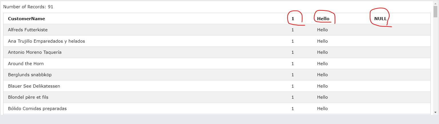 - CostomerID 를 ID라는 별칭으로, CustomerName 을 NAME 이라는 별칭으로, Address 를 ADDR 이라는 별칭으로 가져오기