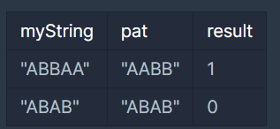 - 바꾼 문자열에서 연속하는 부분 중, pat 있으면 1, 없으면 0