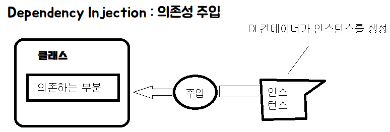 -- 외부에서의 주입 : "사용하는 객체" 클래스의 밖에서 "사용되는 객체" 인스턴스를 주입하는 것.