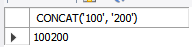 SELECT CONCAT('100', '200'); -- 문자와 문자를 연결(문자로 처리)