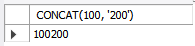 SELECT CONCAT(100, '200'); -- 정수와 문자를 연결(정수가 문자로 변환되어 처리됨)