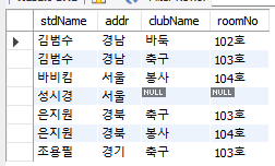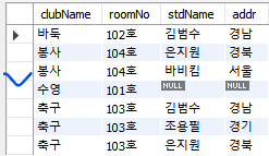 - 클럽을 기준으로 조인해야 하므로 두 번째 조인은 RIGHT JOIN으로 처리해서 clubtbl이 기준이 되도록 설정하면 된다.