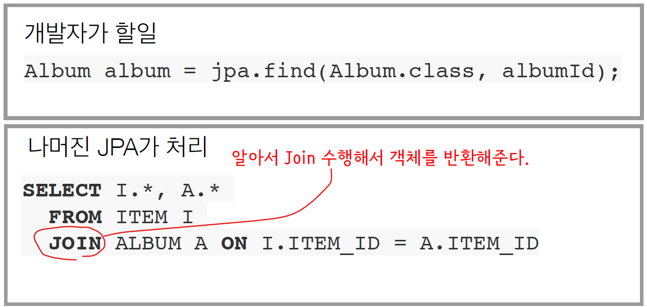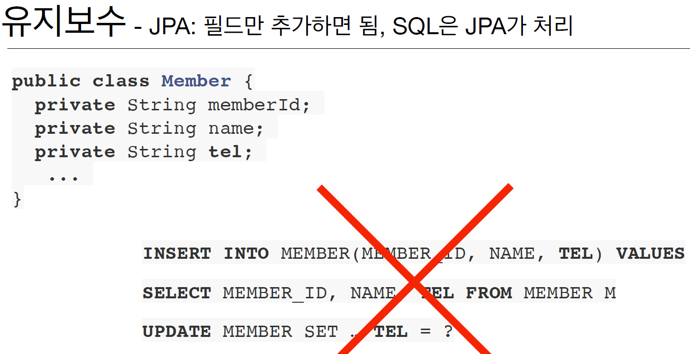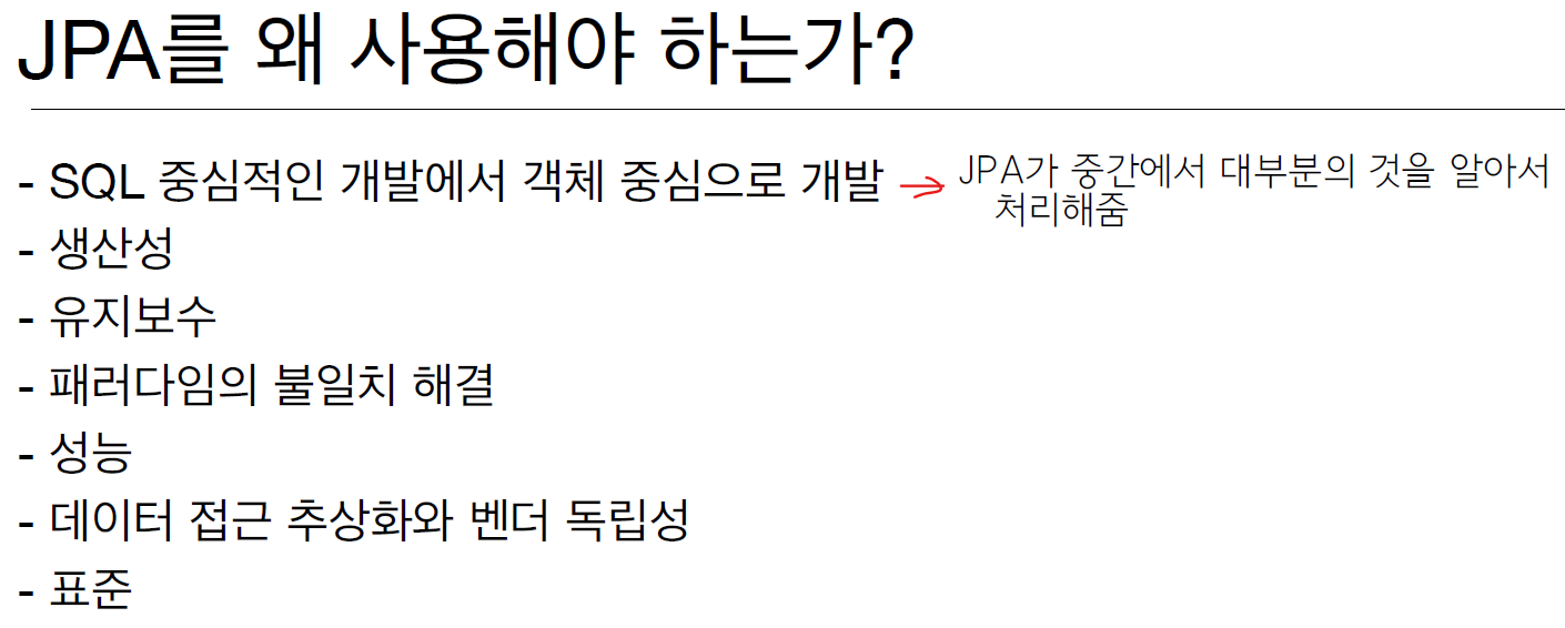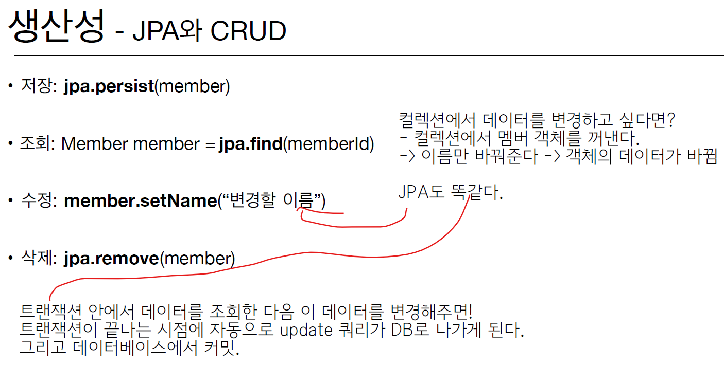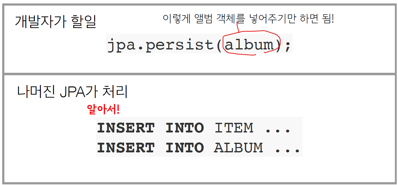 - 원래는 개발자가 직접 해야하는 것을 JPA가 알아서 처리해줌.