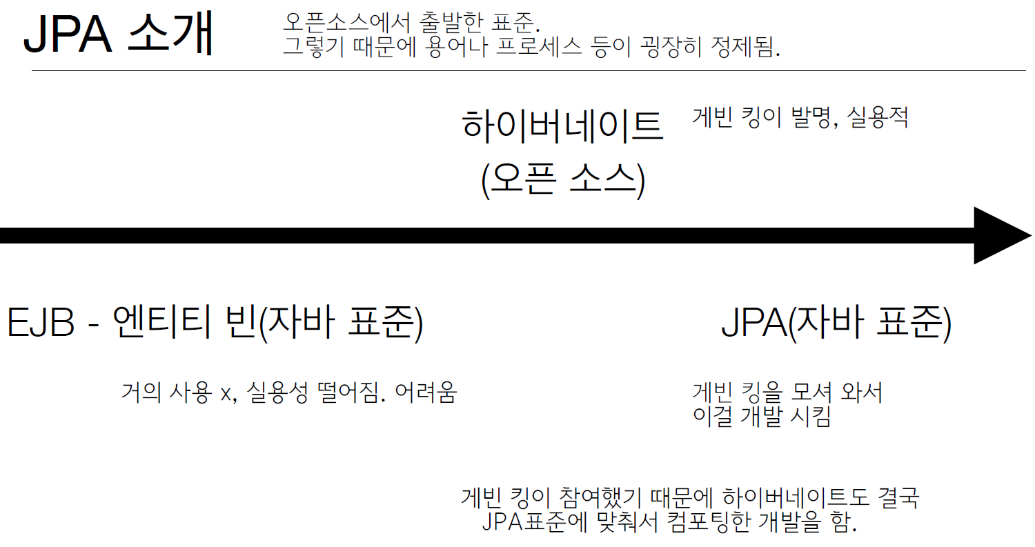 - JPA 2.0(JSR 317) 2009년 : 대부분의 ORM 기능을 포함, JPA Criteria 추가