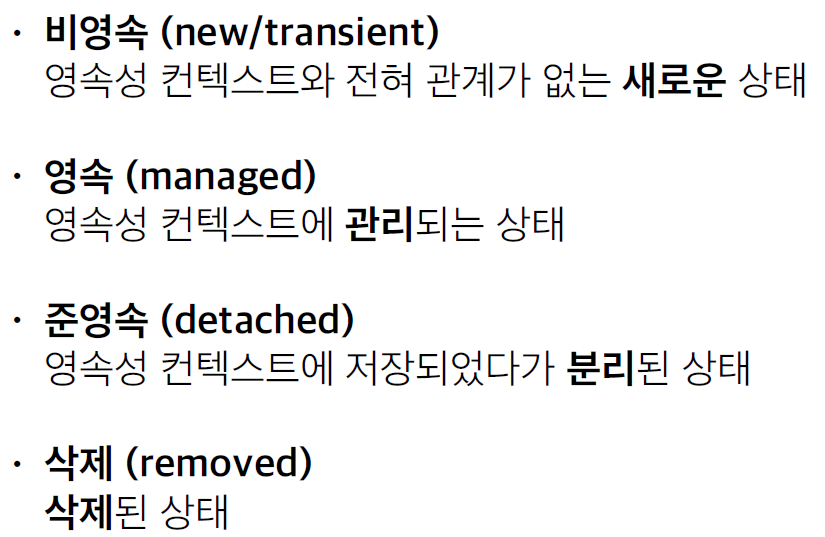 비영속 상태에서는 객체가 생성만 된 것이고,