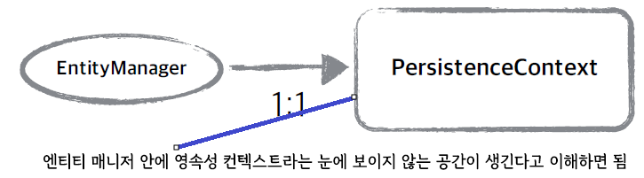 - 엔티티 매니저를 생성하면 영속성 컨텍스트가 있다고 생각하면 속 편함.