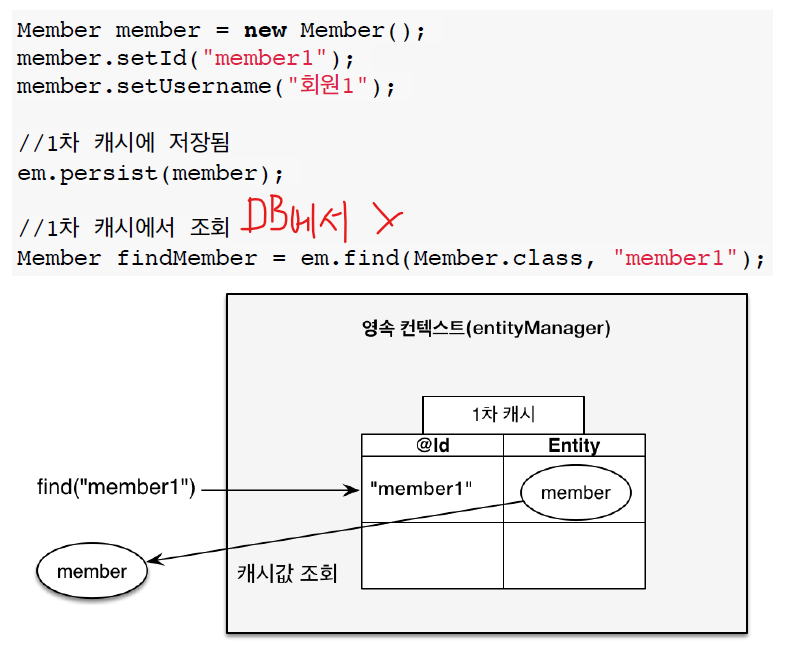 엔티티 조회, 1차 캐시