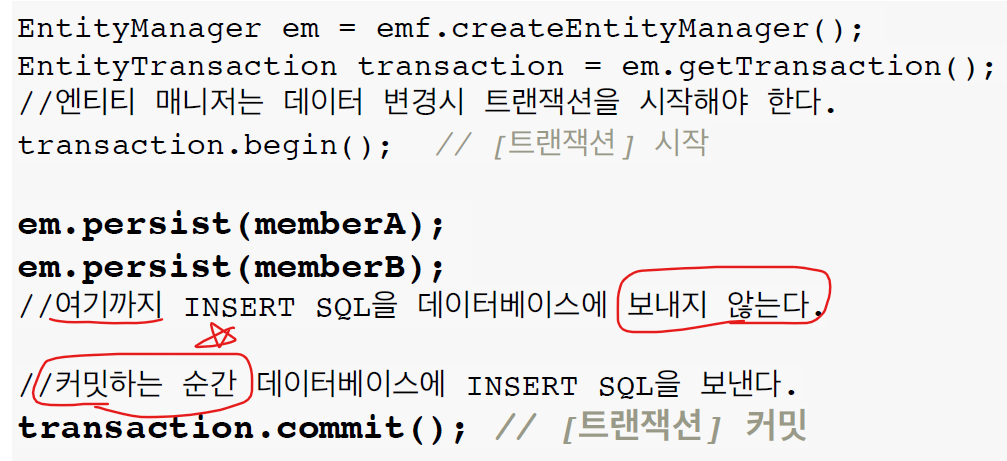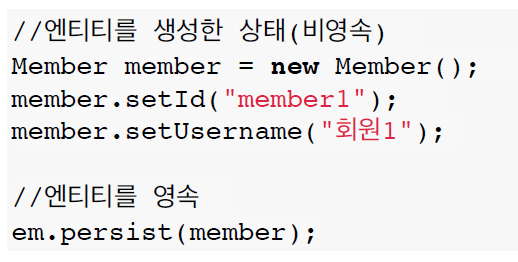 // em.persist(member); //그런데 이 때 DB에 저장되는 건 아니다.