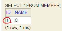 create sequence MEMBER_SEQ start with 1 increment by 1 이 부분이 있다.