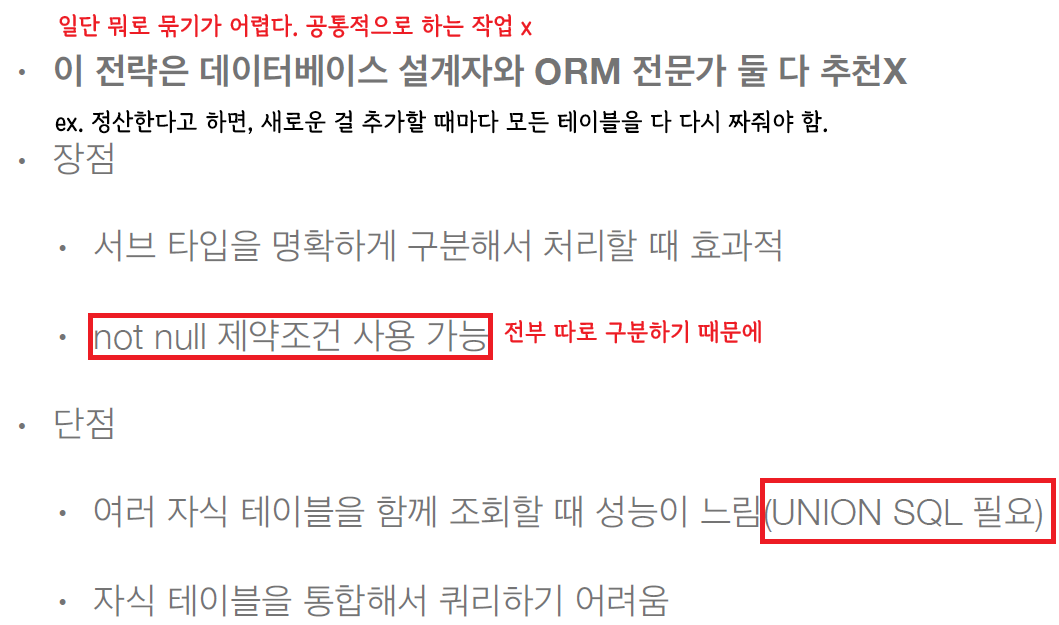 구현 케이스마다 테이블 전략
