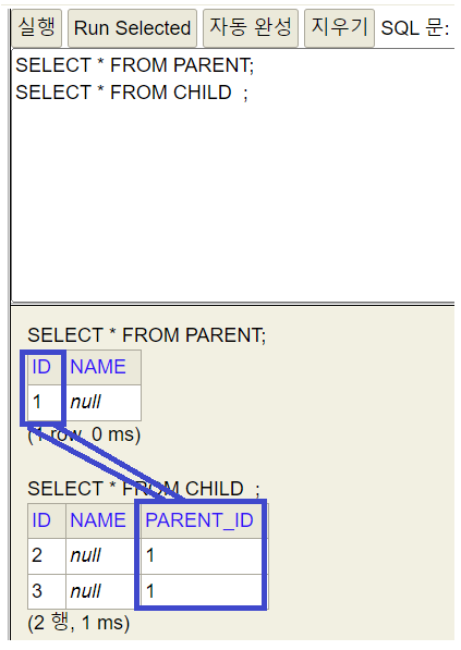 @OneToMany(mappedBy = "parent") // 양방향 매핑 완료