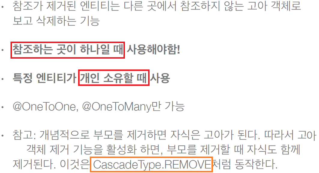 마지막 내용 설명(CascadeType.REMOVE 처럼 동작)