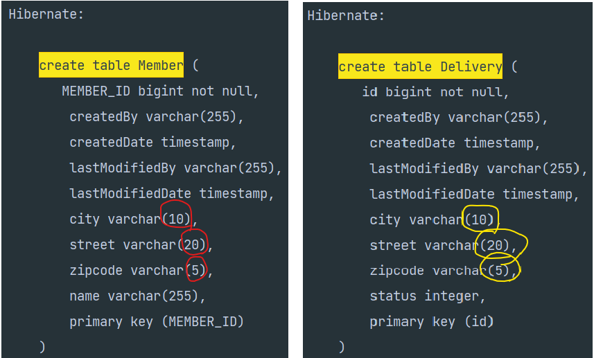 예제 6. 값 타입 매핑 구조도