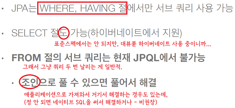 JPA 서브 쿼리 한계