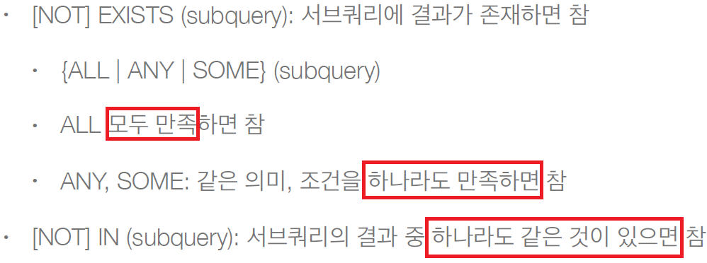 서브 쿼리 지원 함수