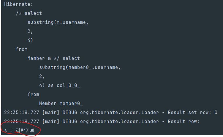 String query = "select substring(m.username, 2, 4) from Member m"; // 요기