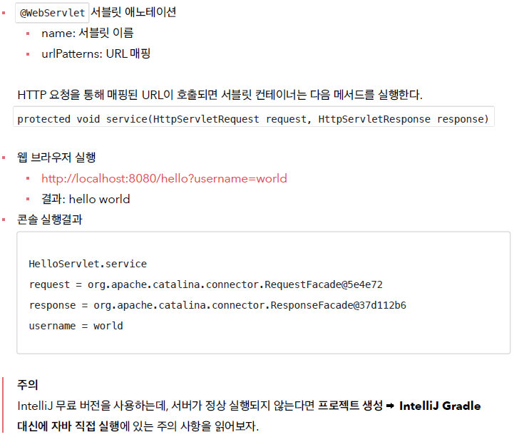 @WebServlet(name = "helloServlet", urlPatterns = "/hello") // "/hello"로 url이 오면 이게 실행된다.