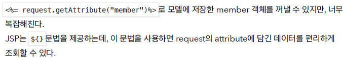 - request.setAttribute("member", member)를 사용하여 "member"라는 이름으로 member 객체를 Model에 저장.