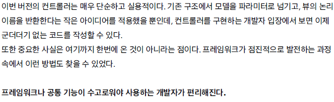 - 이전에는 modelView를 생성해서 그 모델을 가져다 썼는데, 이제는 컨트롤러가 모델까지 생성해서 넘겨준다.