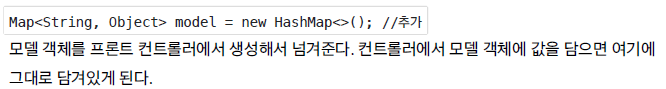 Map<String, Object> model = new HashMap<>(); //모델 만들기 추가(모델 데이터를 저장할 맵)