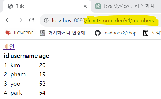 controllerMap.put("/front-controller/v4/members", new MemberListControllerV4());