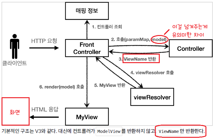 String viewName = controller.process(paramMap, model); // 모델도 넣기