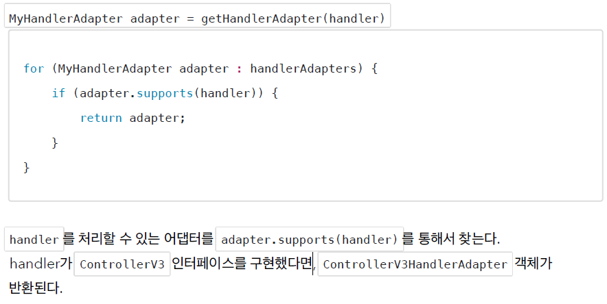for (MyHandlerAdapter adapter : handlerAdapters) { // 돌려서 어댑터 찾기