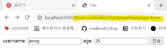 등록: http://localhost:8080/front-controller/v5/v4/members/new-form