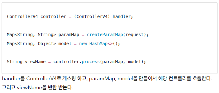 // ControllerV4 타입으로 캐스팅하여 컨트롤러를 가져옴