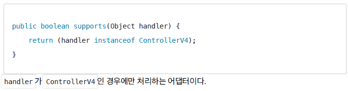 // 해당 핸들러가 ControllerV4 타입인지 확인하여 처리 가능 여부를 반환